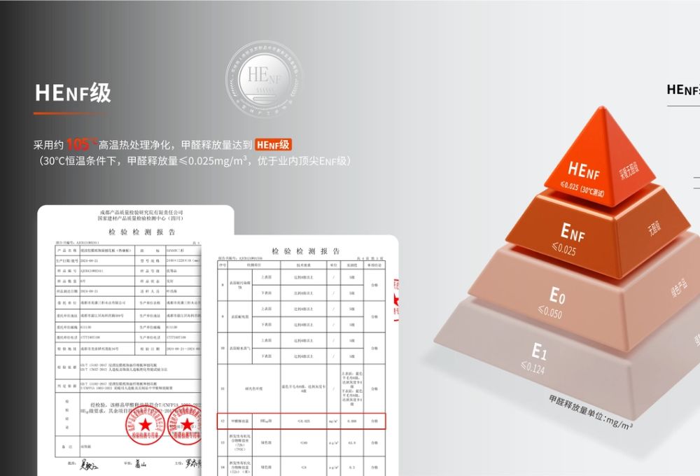 地暖无忧:在30℃高温环境下(模拟地暖条件)检测,甲醛释放量低于0.025mg/m³,达到HENF级,超越国标ENF级标准近3倍,彻底解决地暖升温导致的甲醛超标问题。